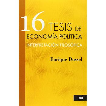 La teoría de la infra- y supra-estructura se sustituye por una rica y múltiple relación de campos y sistemas que constituyen una nueva interpretación de la antigua teoría. Karl Marx nos lo autoriza. Estas 16 tesis de economía política van dirigidas a una nueva generación de izquierda que desde 1989, año del derrumbe del socialismo real en Europa, ha quedado como desprovista de una teoría que sepa interpretar los acontecimientos de esta época de radical crisis de transformación. La primera parte no es sólo la descripción pedagógica del sistema de las categorías de la economía política de Marx, sino que dichas categorías son igualmente ordenadas en su génesis histórica (ya que’ en El capital. Marx suponía esas categorías en un orden lógico pero no histórico, excepto el capítulo de la acumulación originaria). Es objeto entonces de debate que pueda haber valor, plusvalor, capital, antes del capitalismo, o que las categorías deban nuevamente definirse al ser subsumidas en el sistema capitalista (cuando este sistema se sitúa como dominante en el campo económico de una nación o del mundo, como acontece actualmente).