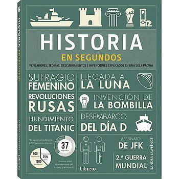 Historia en segundos reúne los momentos fundamentales de la historia moderna en una sola publicación. Cada página contiene «atajos» que te informan de los hechos más importantes en pequeñas píldoras, lo que significa que puedes convertirte en experto en un instante. De la Inquisición a la Guerra Fría, de la Gran Depresión a Hiroshima, de la Revolución Industrial a las revoluciones rusas, gráficos y textos concisos y animados explican cada personaje y evento crucial. Perfecta para quienes quieren aprender pero tienen poco tiempo, esta colección de lecciones ilustradas hace a la historia interesante y accesible.